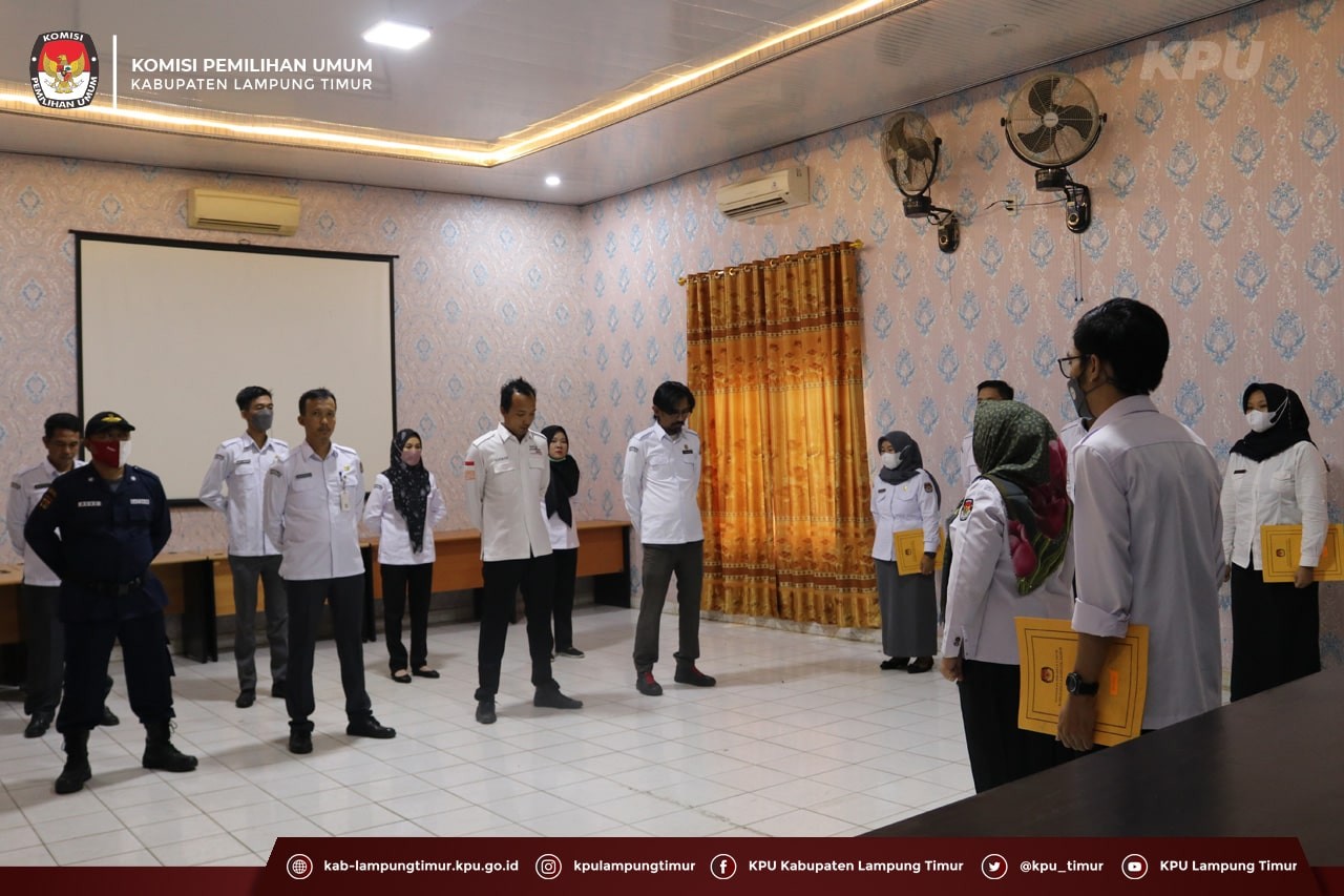 Sukadana, kab-lampungtimur.kpu.go.id - Sekretariat KPU Kabupaten Lampung Timur melaksanakan Apel Rutin Mingguan, Senin (27/6). Dikarenakan cuaca yang kurang mendukung dan apel rutin tetap dilaksanakan di Aula Kantor KPU Kabupaten Lampung Timur. Bertindak sebagai pembina Apel adalah Sekretaris KPU Kabupaten Lampung Timur. Dalam Amanatnya beliau menyampaikan beberapa hal, diantaranya terkait pelaksanaan Piket Kantor di Lingkungan Kantor KPU Kabupaten Lampung Timur yang berdasarkan Surat Edaran Sekjen KPU Republik Indonesia Nomor 5 Tahun 2022 Tentang Sistem Kerja Pegawai Sekretariat KPU pada masa Tahapan Pemilu dan Pemilihan 2024. Dengan dilaksanakannya Jadwal Piket Kantor di Hari Kalender ini agar KPU tetap melayani masyarakat 24 Jam, selaras dengan komitmen KPU "Berintegritas 24 Jam".