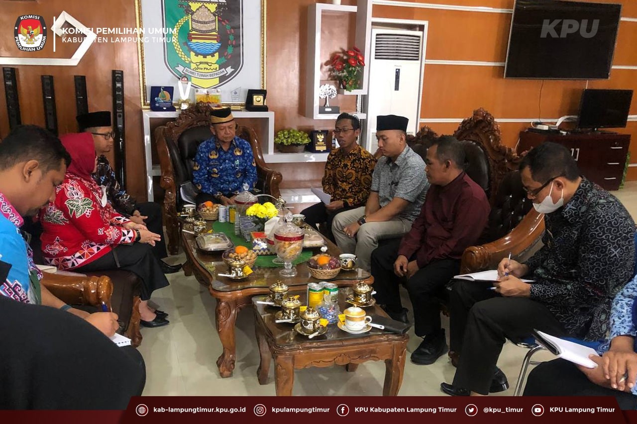 Sukadana, kab-lampungtimur.kpu.go.id - KPU Kabupaten Lampung Timur pada hari Jum’at, 20 Mei 2022 melaksanakan audiensi dengan Pemerintah Daerah Kabupaten Lampung Timur. Ketua dan Anggota, Sekretaris dan Kasubbag KPU Kabupaten Lampung Timur bertemu dengan Bupati Lampung Timur, M. Dawan Rahardjo dan Tim Anggaran Pemerintah Daerah (TAPD) Lampung Timur. Audiensi ini terkait penyampaian rancangan anggaran belanja kegiatan Pemilihan Bupati dan Wakil Bupati Lampung Timur Tahun 2024.