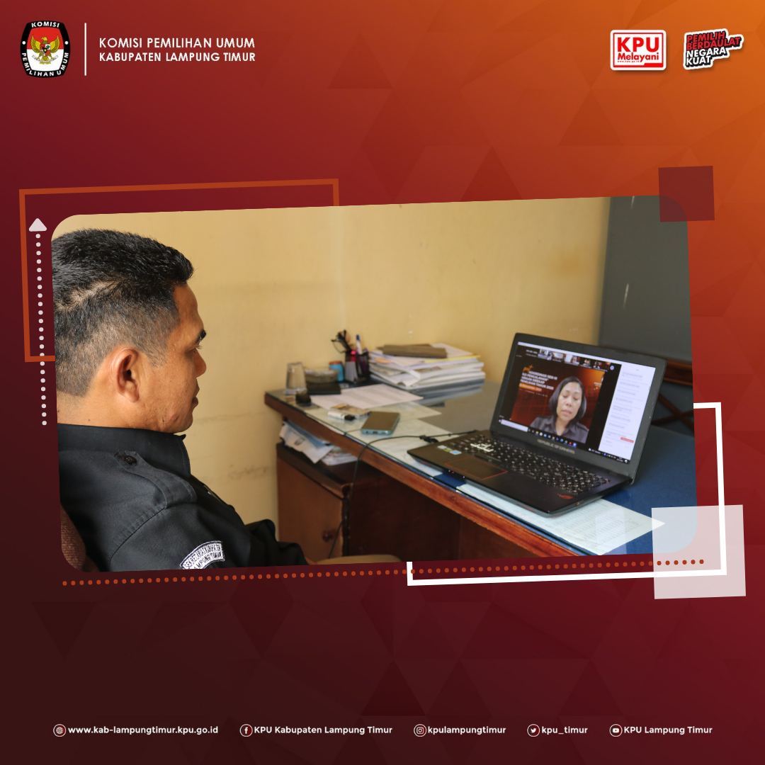 KPU Kabupaten Lampung Timur yang dalam hal ini diwakili oleh Anggota KPU Kabupaten Lampung Timur Ketua Divisi Teknis Penyelenggaraan Pemilu, Desman Yusri serta Plt. Kasubbag Teknis Penyelenggaraan Pemilu dan Hubungan Partisipasi Masyarakat, Budiyanto mengikuti jalannya Rakor Berbagi Pengalaman Penggunaan Sirekap yang dilakukan secara daring tersebut. Kegiatan yang dimulai tepat pukul 13.30 WIB tersebut menghadirkan 3 (tiga) narasumber dari satuan kerja yang menyelenggarakan Pemilihan Serentak 2020 untuk berbagi best practice yang mereka dapat lakukan dalam menggunakan Sirekap pada Pemilihan Serentak 2020 silam.