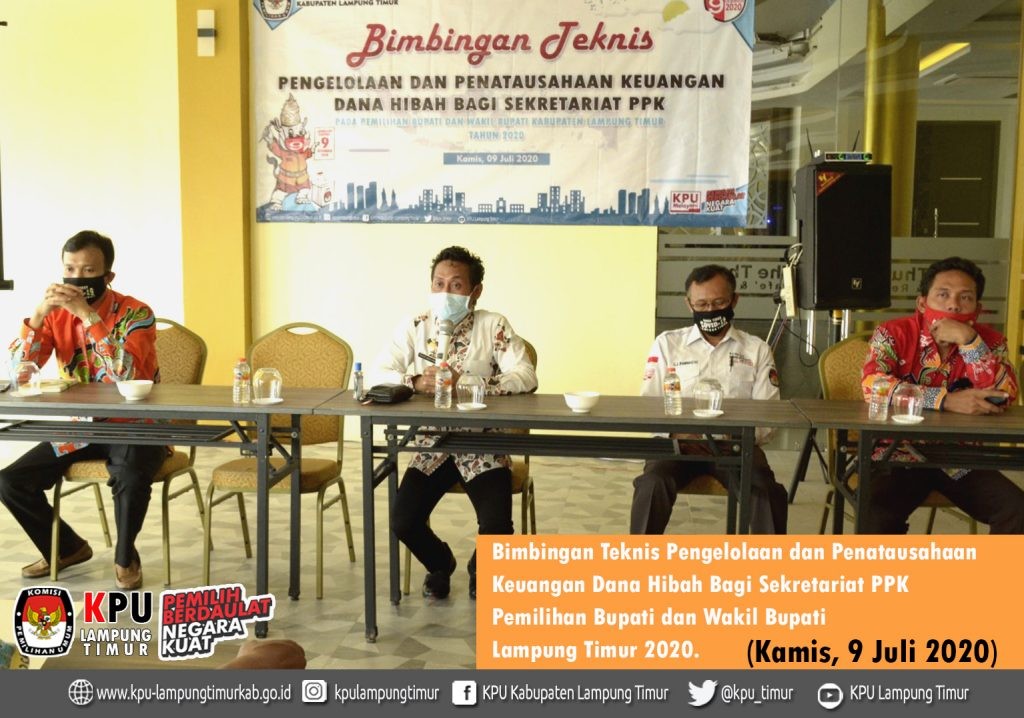 LAMPUNG TIMUR – Dalam rangka meningkatkan kualitas pengelolaan dan laporan pertanggungjawaban dana hibah Pemilihan Bupati dan Wakil Bupati Lampung Timur Tahun 2020 kepada Badan Adhoc, KPU Kabupaten Lampung Timur menyelenggarakan Bimbingan Teknis Pengelolaan dan Penatausahaan Dana Hibah Pemilihan Bupati dan Wakil Bupati Lampung Timur Tahun 2020 bagi Sekretariat Panitia Pemilihan Kecamatan (PPK).