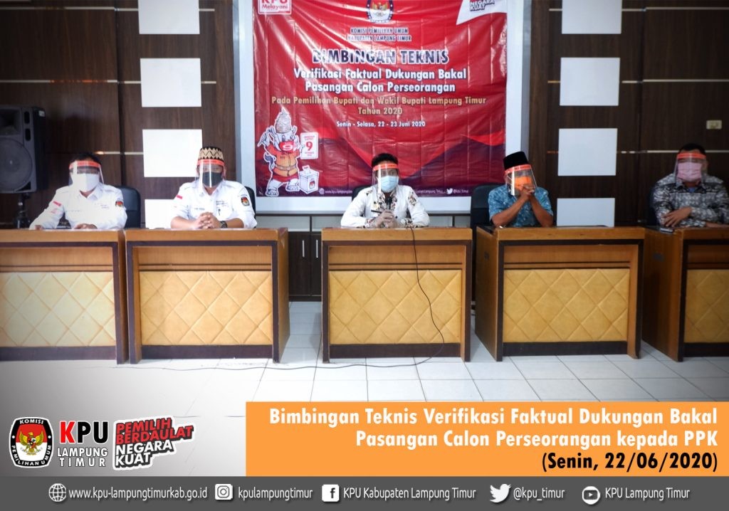 BIMBINGAN TEKNIS VERIFIKASI FAKTUAL DUKUNGAN BAKAL PASANGAN CALON PERSEORANGAN PADA PEMILIHAN BUPATI DAN WAKIL BUPATI LAMPUNG TIMUR TAHUN 2020