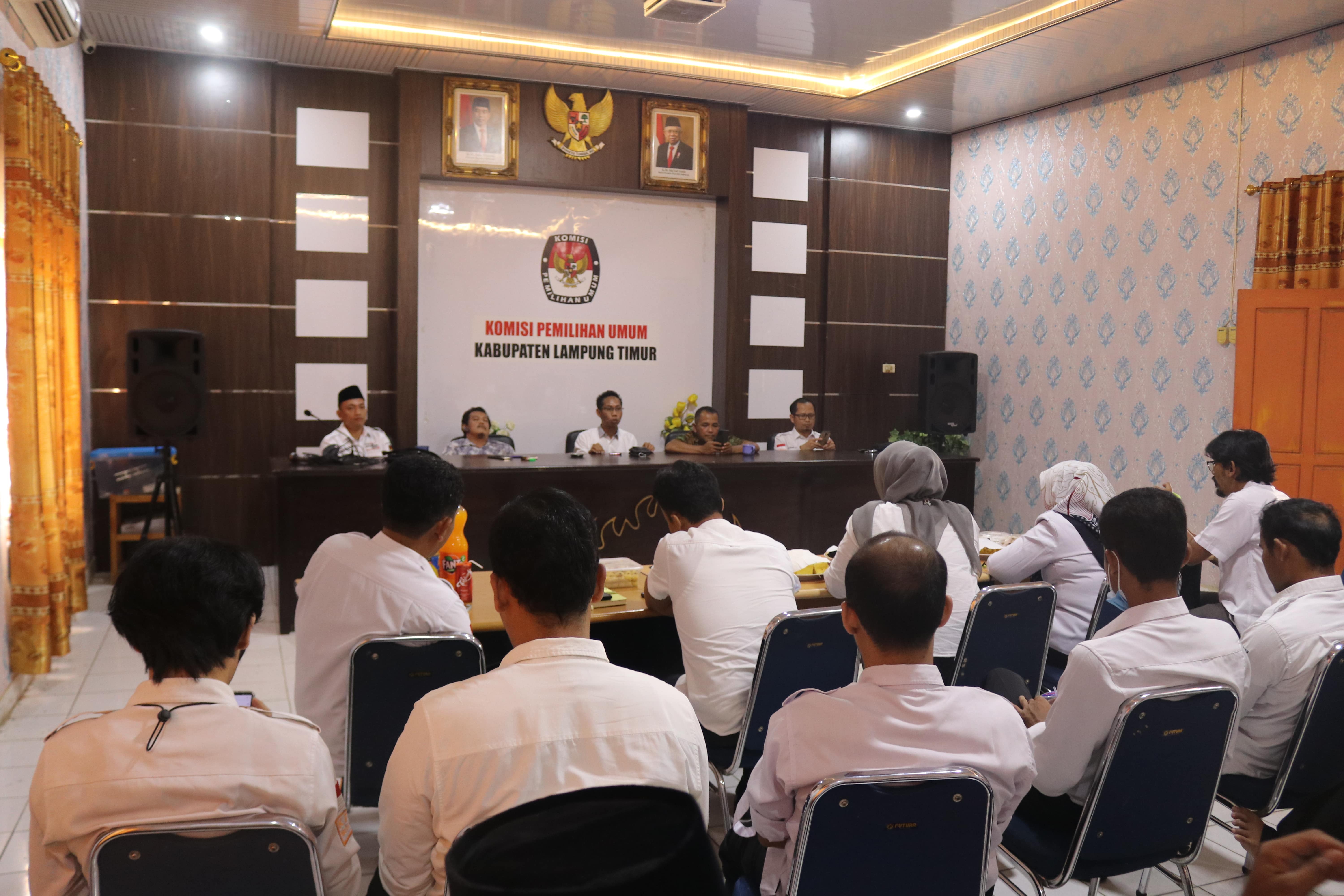 Sukadana, kab-lampungtimur.kpu.go.id Halal Bihalal merupakan sebuah momentum untuk saling memaafkan dan mempererat silaturahmi. Sebagai bentuk persaudaraan yang erat, Segenap Keluarga Besar KPU Kabupaten Lampung Timur melaksanakan acara Halal Bihalal dihari pertama masuk kerja pasca cuti Bersama Hari Raya Idul Fitri 1443 H di Lingkungan Kantor KPU Kabupaten Lampung Timur. Acara ini dilaksanakan di Aula Kantor KPU Kabupaten Lampung Timur. Hadir dalam acara ini Ketua dan Anggota KPU Kabupaten Lampung Timur, Sekretaris, Kasubbag serta Staf KPU Kabupaten Lampung Timur.