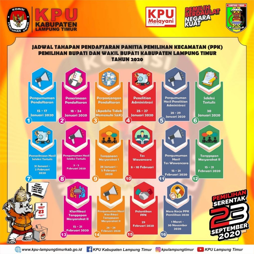Jadwal Tahapan Pendaftaran Panitia Pemilihan Kecamatan (PPK) Pada Pemilihan Bupati dan Wakil Bupati Kabupaten Lampung Timur Tahun 2020