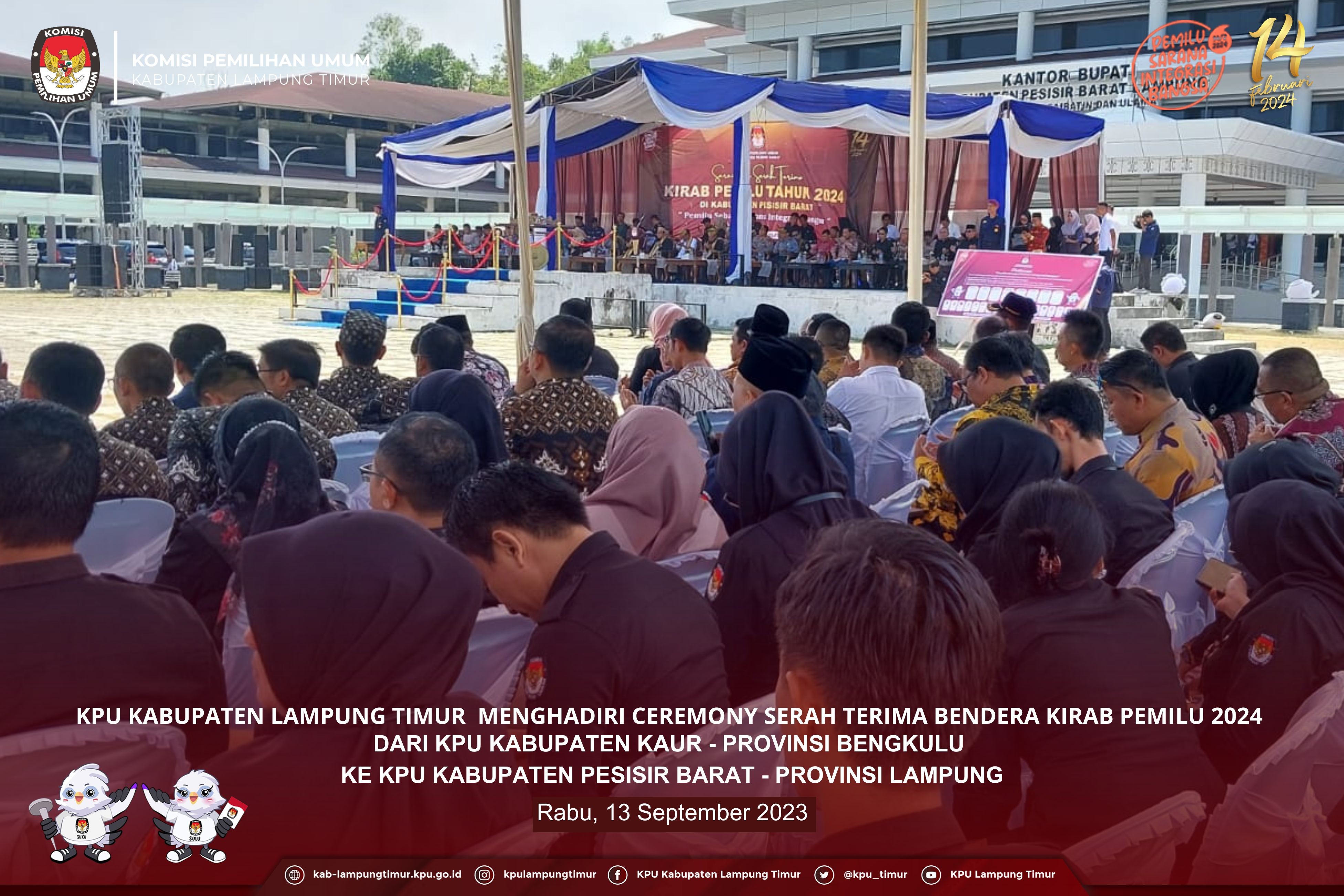 KPU KABUPATEN LAMPUNG TIMUR MENGHADIRI CEREMONY SERAH TERIMA BENDERA KIRAB PEMILU 2024 DARI KPU KABUPATEN KAUR - PROVINSI BENGKULU KE KPU KABUPATEN PESISIR BARAT - PROVINSI LAMPUNG