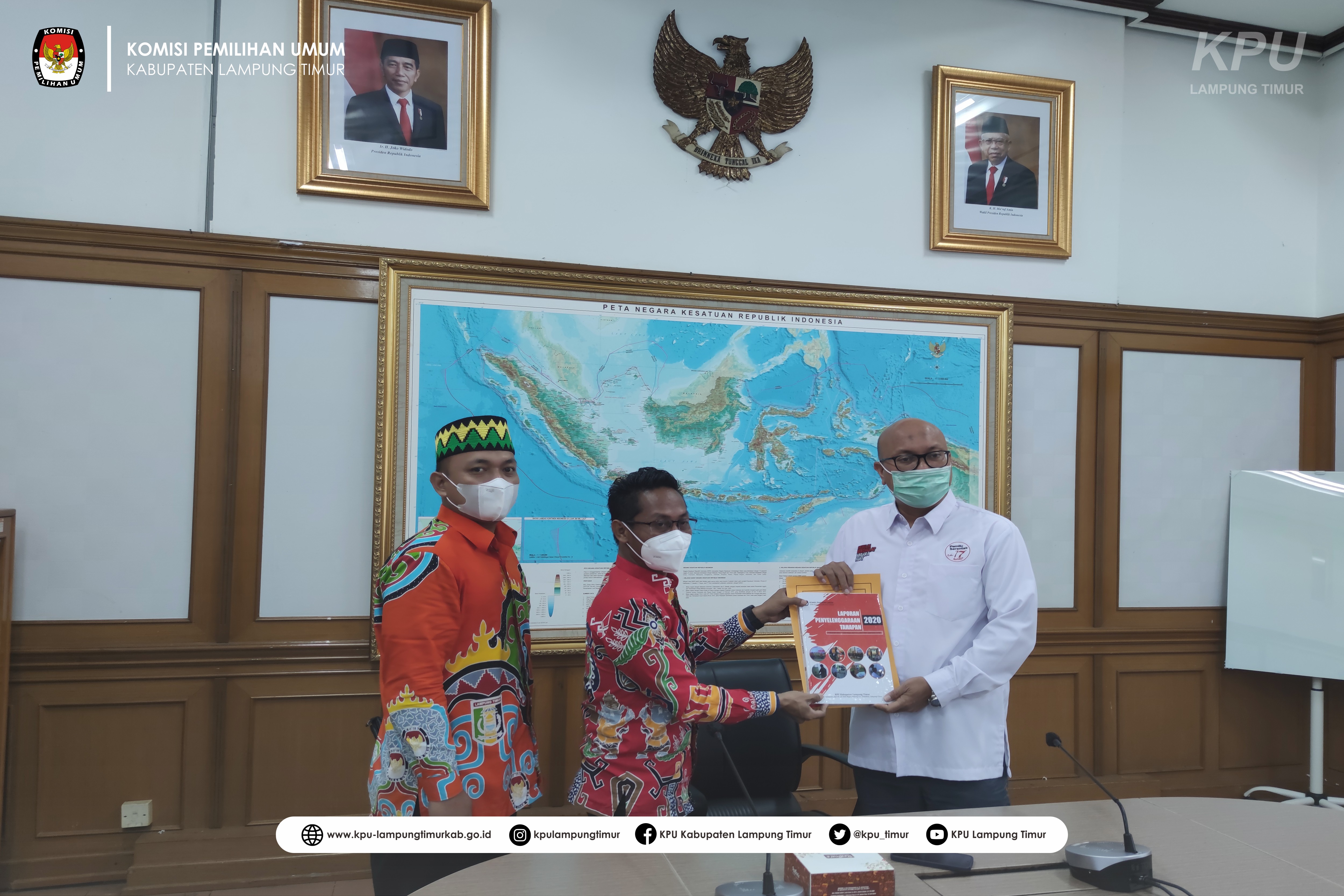 Laporan akhir penyelenggaraan tahapan Pemilihan diserahkan oleh Ketua KPU Kabupaten Lampung Timur Wasiyat Jarwo Asmoro beserta Anggota KPU Kabupaten Lampung Timur Divisi Teknis Penyelenggaraan Desman Yusri, dan diterima secara langsung oleh Plt. Ketua KPU RI, Ilham Saputra di Kantor KPU RI di Jakarta.