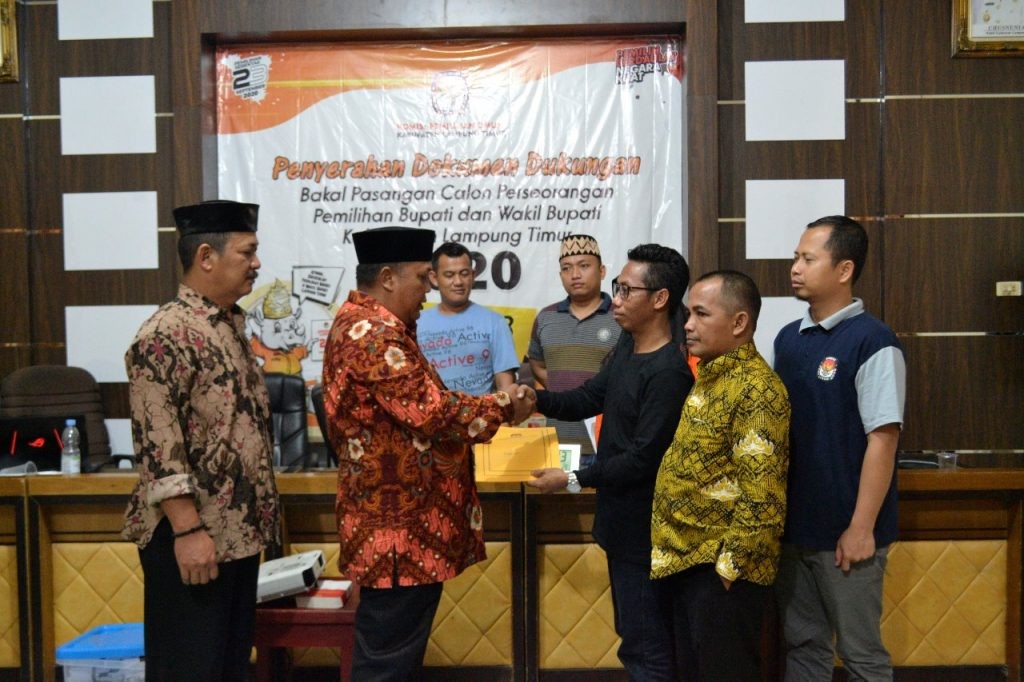 Sebelumnya (22/02/2020) Bakal Pasangan Calon Perseorangan tersebut sudah menyerahkan berkas syarat dukungan kepada KPU Lampung Timur, namun ada beberapa syarat dukungan yang belum terpenuhi, sehingga KPU dan BAWASLU Lampung Timur setelah melakukan kajian memutuskan untuk mengembalikan dokumen syarat dukungan kepada bakal pasangan calon untuk diperbaiki terlebih dahulu.