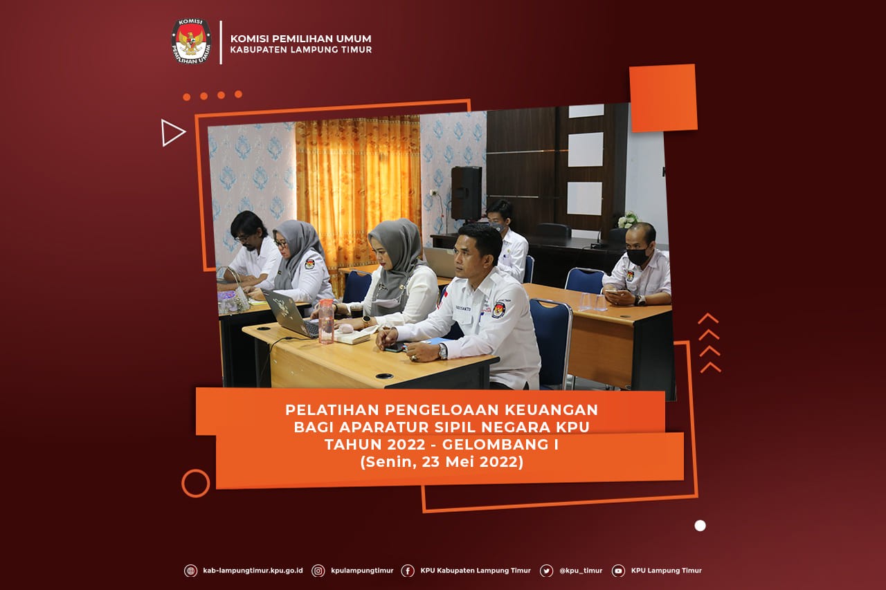 Sukadana, kab-lampungtimur.kpu.go.id - Pusat Pelatihan, Penelitian, dan Pengembangan Sekretariat Jenderal KPU RI menyelenggarakan giat Pelatihan Pengelolaan Keuangan bagi ASN KPU Tahun 2022. Demikian pula kegiatan tersebut diikuti oleh Tim Pengelola Keuangan KPU Kabupaten Lampung Timur.