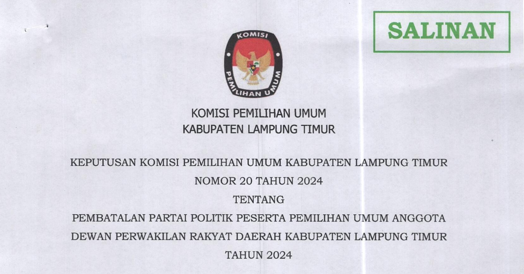 Pembatalan Partai Politik Peserta Pemilu Anggota DPRD Kabupaten Lampung Timur Tahun 2024