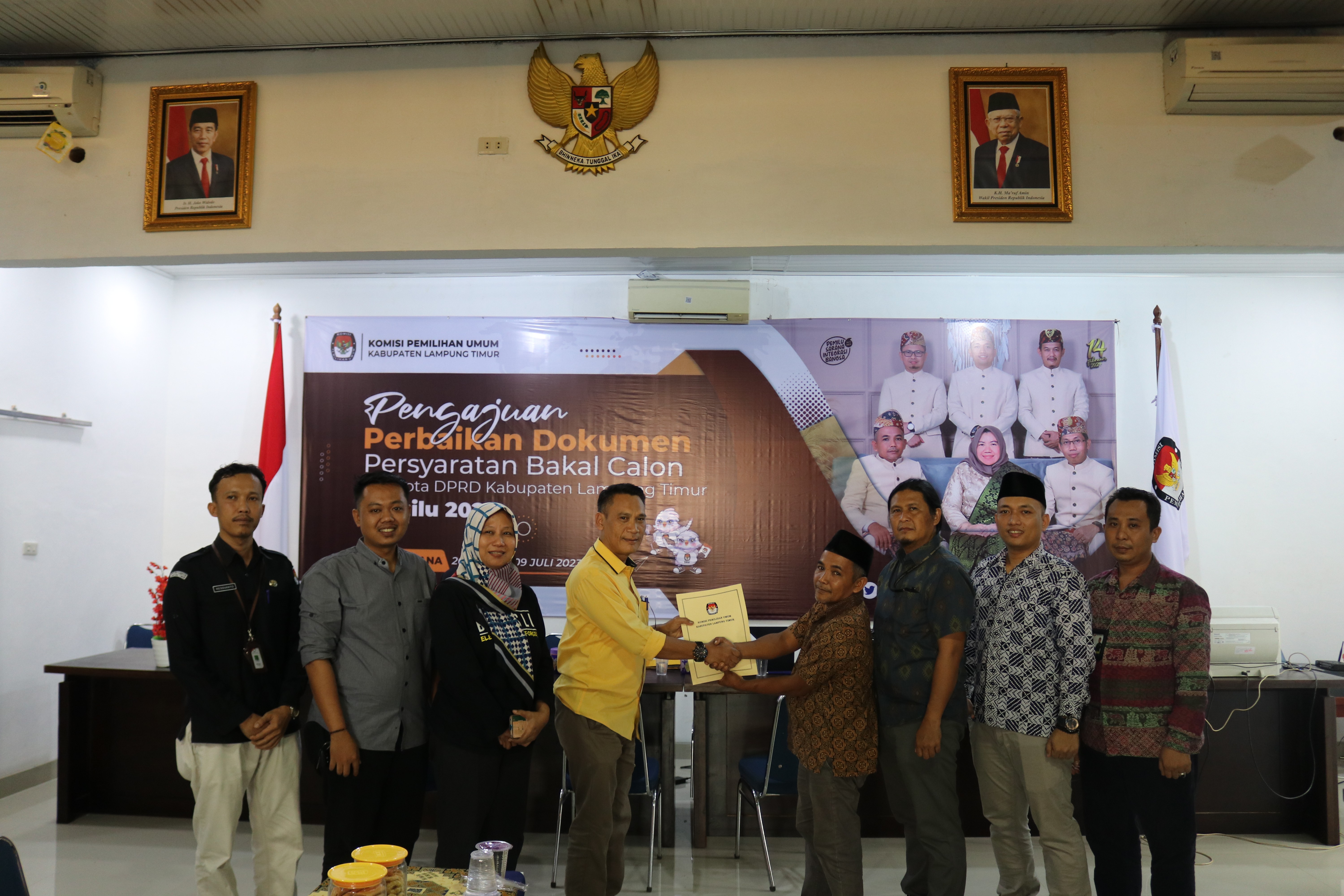 Pengajuan Perbaikan Dokumen Persyaratan Bakal Calon Anggota DPRD Kabupaten Lampung Timur Untuk Pemilu Tahun 2024 dari Partai Golkar