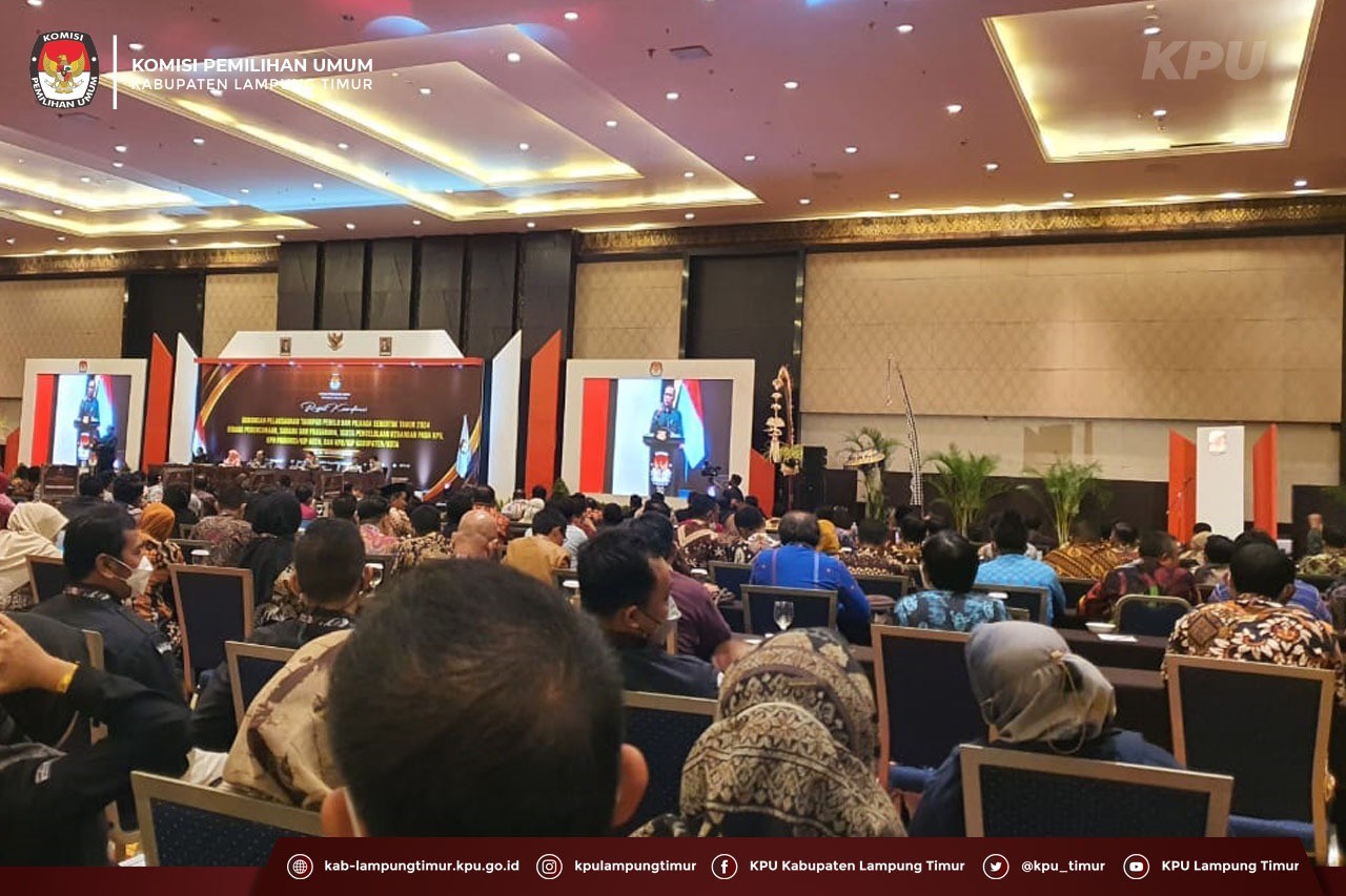 Sukadana, kab-lampungtimur.kpu.go.id – Ketua KPU Kabupaten Lampung Timur, Wasiyat Jarwo Asmoro, Anggota Divisi Datin, M. Wahid Setio Budi, Kasubag Keuangan, Umum & Logistik, Budiyanto, dan Kasubag Rendatin Zaina Purnama Sari mengikuti Rapat Koordinasi Dukungan Pelaksanaan Tahapan Pemilu dan Pilkada Serentak Tahun 2024 Bidang Perencanaan, Sarana dan Prasarana serta Pengelolaan Keuangan, serta diikuti oleh lebih dari 2.200 peserta mengikuti acara tersebut.