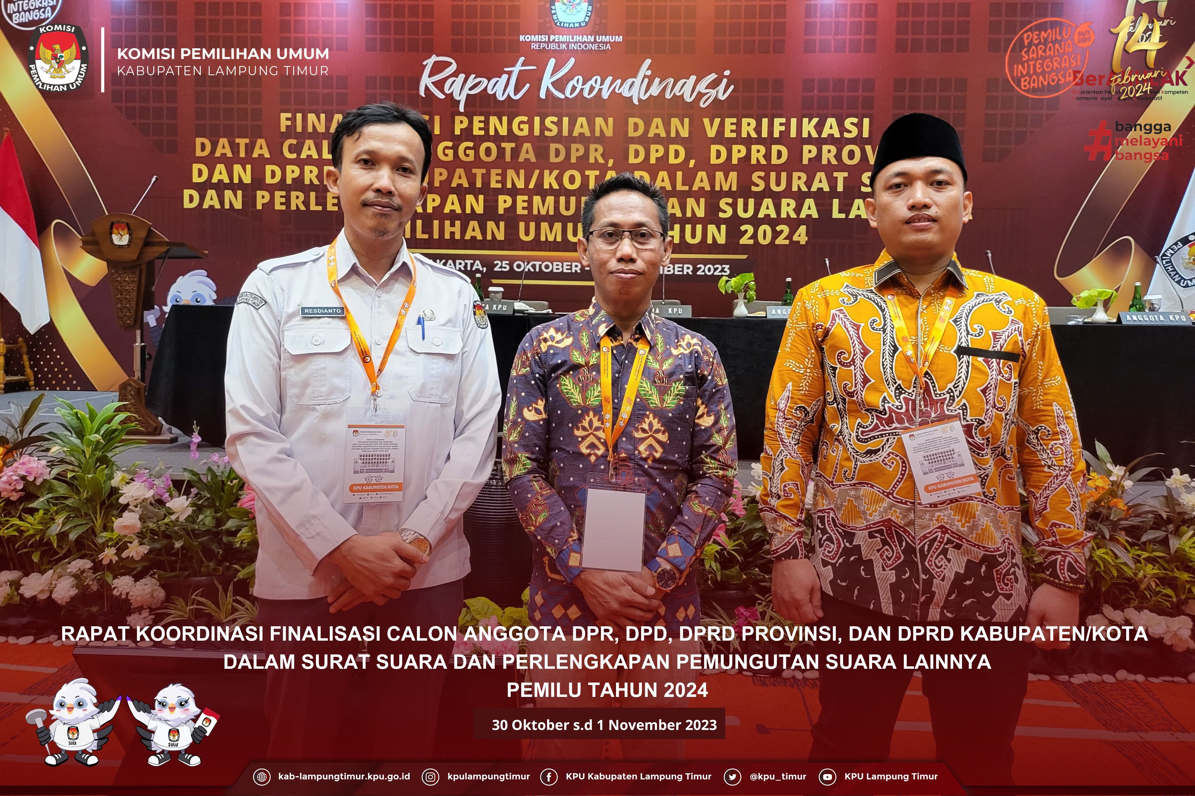 Giat ini diikuti oleh Ketua KPU Kabupaten Lampung Timur Wasiyat Jarwo Asmoro, Kadiv Teknis Penyelenggaraan Desman Yusri serta Kepala Sub Bagian Teknis dan Hupmas Resdianto, yang dilaksanakan di Grand Mercure Harmoni, Jakarta.