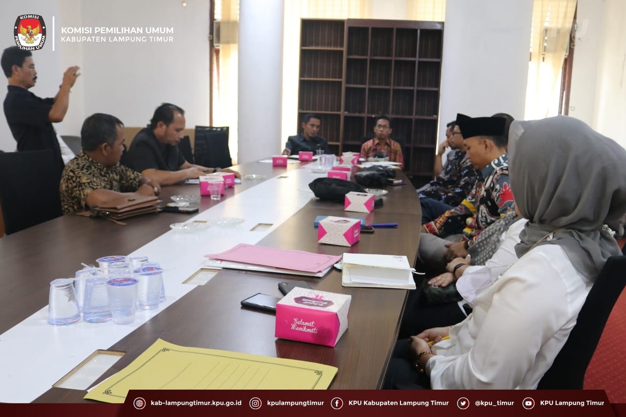 Sukadana, kab-lampungtimur.kpu.go.id - Ketua dan Anggota, Sekretaris serta Kasubbag Perencanaan Data dan Informasi KPU Kabupaten Lampung Timur menghadiri Undangan Rapat Ketua DPRD Kabupaten Lampung Timur pada hari Kamis, (02/6/2022). Rapat dimulai pukul 13.00 WIB bertempat di Ruang Rapat Sekretariat DPRD Kabupaten Lampung Timur. Pelaksanaan rapat audiensi ini membahas tentang Persiapan Pemilu dan Pilkada Serentak Tahun 2024.