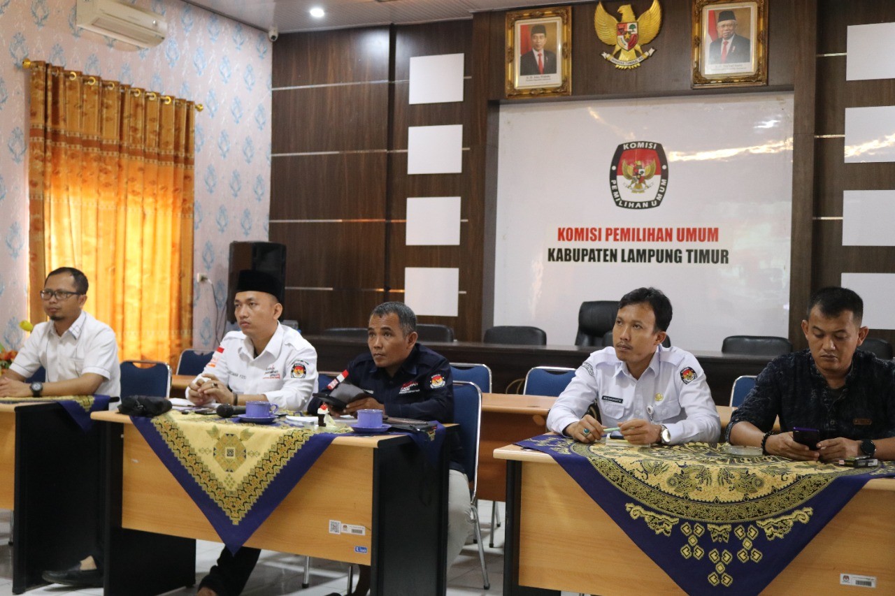 Pada kesempatan ini hadir Anggota KPU Kabupaten Lampung Timur, Desman Yusri, Wanahari, M. Wahid Setio Budi, F. Bagus Kumbara, serta didampingi oleh Kasubbag Teknis Penyelenggaraan Pemilu Partisipasi dan Hubungan Masyarakat, Resdianto dan Admin/Operator Sistem Informasi Partai Politik (SIPOL).