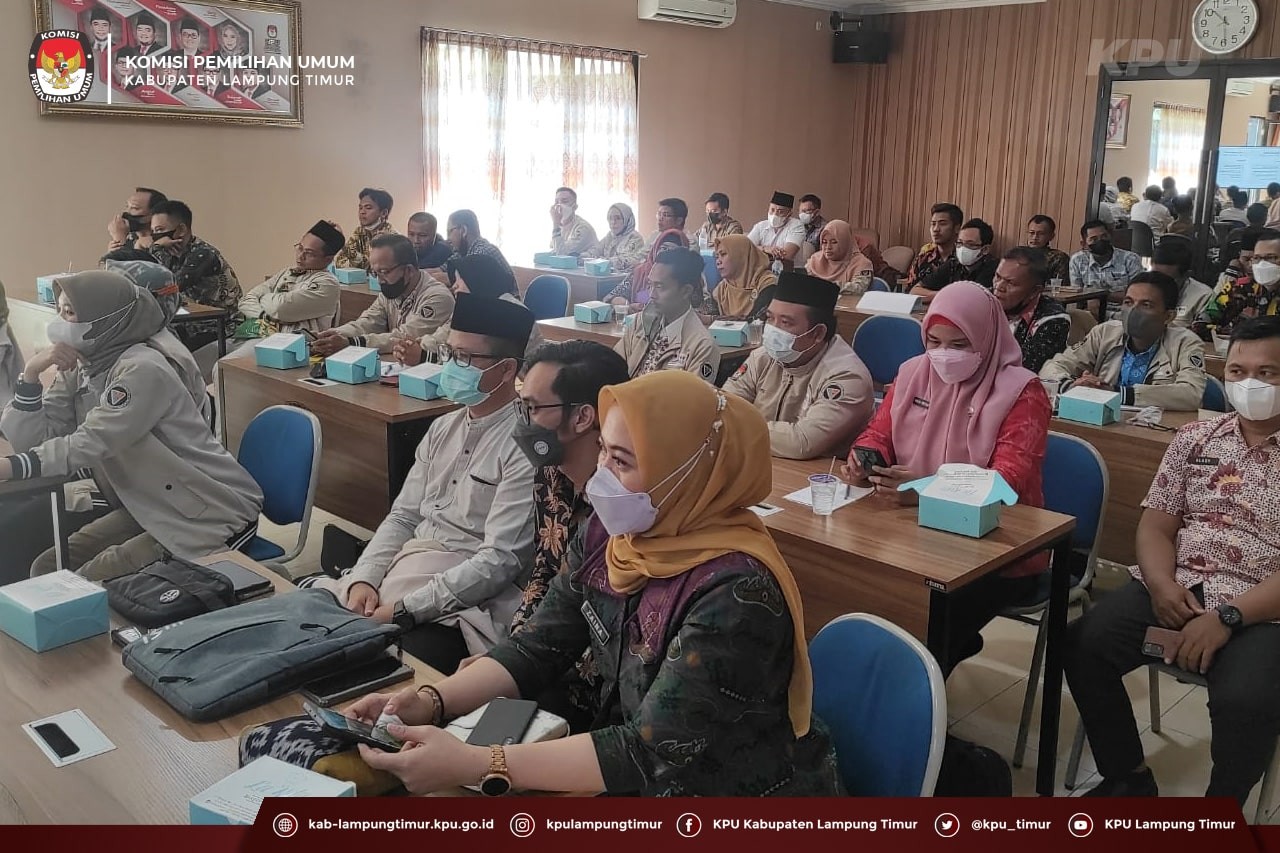 Bandar Lampung, kab-lampungtimur.kpu.go.id - Ketua Divisi Data dan Informasi, M. Wahid Setio Budi, Kepala Sub-bagian Perencanaan Data dan Informasi, Zaina Purnamasari, serta Admin/Operator Sidalih KPU Kabupaten Lampung Timur menghadiri Undangan Rapat KPU Provinsi Lampung, Jum’at (10/06/2022). Rapat dimulai pukul 09.00 WIB dan bertempat di Aula Kantor KPU Provinsi Lampung. Acara ini merupakan tindaklanjut Rapat Koordinasi dengan KPU Republik Indonesia mengenai Pemutakhiran Data Pemilih Berkelanjutan untuk Pemilu Tahun 2024. Oleh sebab itu, pembahasan dalam Rapat ini membahas tentang Pemutakhiran Data Pemilih Berkelanjutan untuk Pemilu Tahun 2024 di Provinsi Lampung. Rapat dibuka oleh Ketua KPU Provinsi Lampung, Erwan Bustani, dan dilanjutkan dengan pemaparan Hasil Rapat Koordinasi Datin dengan KPU Republik Indonesia oleh Ketua Divisi data dan Informasi KPU Provinsi Lampung, Agus Riyanto.