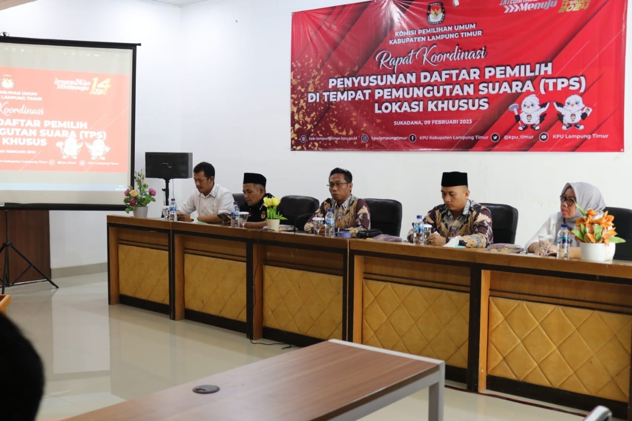 Rapat Koordinasi Penyusunan Daftar Pemilih di Tempat Pemungutan Suara (TPS) Lokasi Khusus di Aula Kantor KPU Kabupaten Lampung Timur