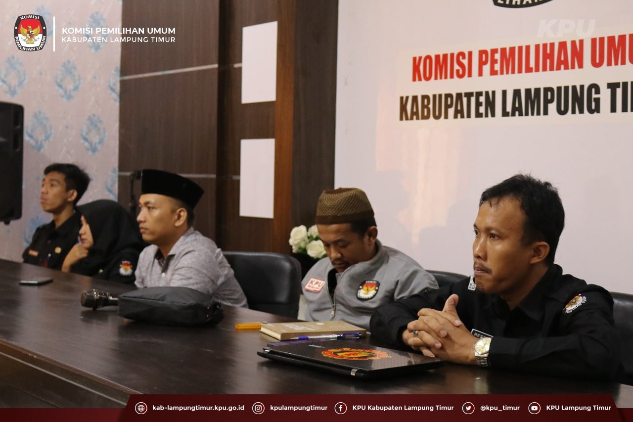 Rapat ini diikuti oleh Anggota KPU Kabupaten Lampung Timur, Desman Yusri, F. Bagus Kumbara, M. Wahid Setio Budi, Kasubbag Teknis Penyelenggaraan Pemilu Partisipasi dan Hupmas KPU Kabupaten Lampung Timur Resdianto, Staf dan Operator Sipol KPU Kabupaten Lampung Timur.
