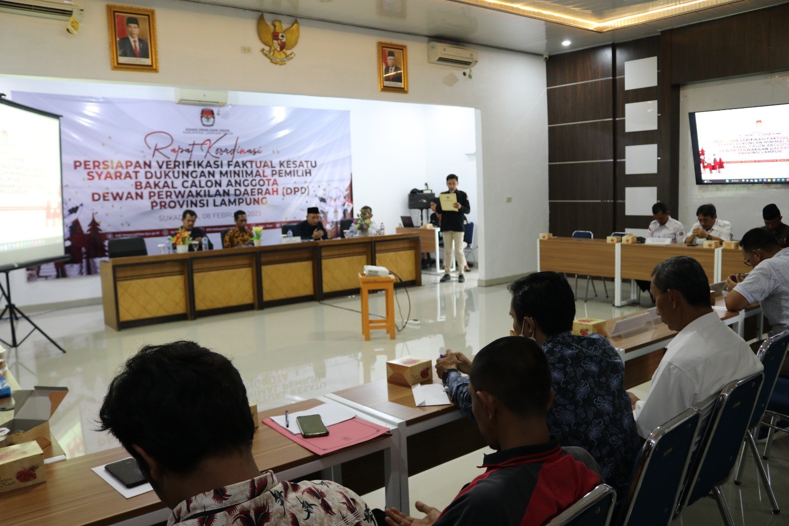 Rapat Koordinasi Persiapan Verifikasi Faktual Kesatu Syarat Dukungan Minimal Pemilih Bakal Calon Anggota DPD Provinsi Lampung