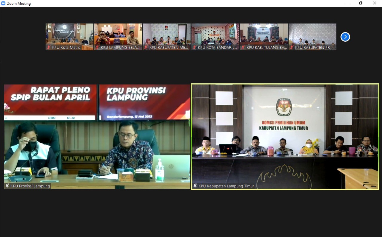 Sukadana, kab-lampungtimur.kpu.go.id – KPU Kabupaten Lampung Timur mengikuti Rapat Pleno Sistem Pengendalian Intern Pemerintah (SPIP) Bulan April Tahun 2022 pada hari Jumat, 13 Mei 2022. Acara diselenggarakan oleh KPU Provinsi Lampung dan diikuti oleh KPU Kabupaten/Kota se-Provinsi Lampung secara daring. Acara dimulai pukul 09.00 WIB s.d selesai. Hadir dalam Acara ini Ketua dan Anggota, Sekretaris dan Kasubbag Hukum dan SDM KPU Kabupaten Lampung Timur. Acara dibuka oleh Ketua KPU Provinsi Lampung (Erwan Bustami) dan dipandu oleh Divisi Hukum dan Pengawasan KPU Provinsi Lampung (M. Tio Aliansyah). KPU Kabupaten/Kota se-Provinsi Lampung masing-masing menyampaikan laporan pelaksanaan SPIP bulan April Tahun 2022 dan dilanjutkan dengan agenda hasil evaluasi atas penyelenggaraan SPIP serta pengisian dan pelaporan kartu kendali SPIP pada KPU Kabupaten/Kota di Wilayah Lampung.