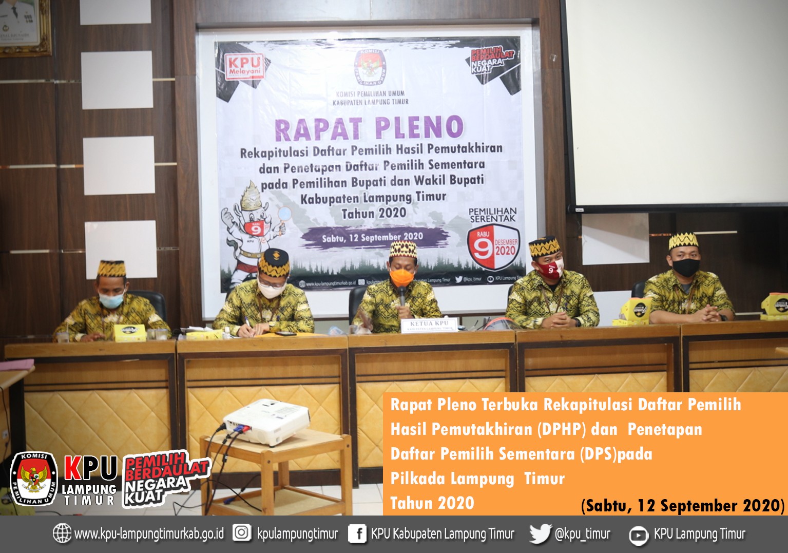 Rapat Pleno terbuka Rekapitulasi DPHP dan Penetapan DPS pada Pilkada Lampung Timur Tahun 2020