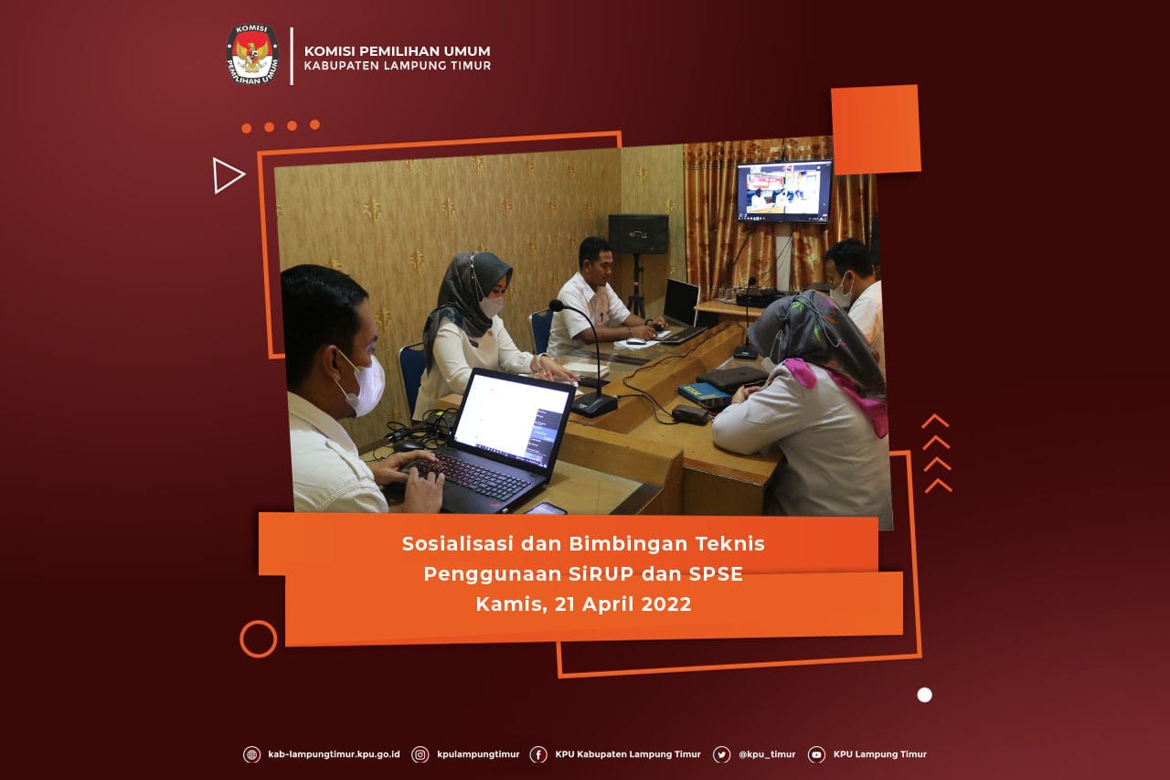 Sukadana, kab-lampungtimur.kpu.go.id - KPU Kabupaten Lampung Timur pada hari Kamis, 21 April 2022 mengikuti Kegiatan Sosialisasi dan Bimbingan Teknis dalam hal penggunaan layanan Sistem Informasi Rencana Umum Pengadaan (SiRUP) Barang/Jasa dan Sistem Pengadaan Secara Elektronik (SPSE). Kegiatan ini diselenggarakan oleh KPU Provinsi Lampung dan dilaksanakan secara daring. Acara dimulai pukul 09.00 s/d selesai. Acara dibuka oleh Ketua KPU Provinsi Lampung (Erwan Bustami) dan pengarahan dari Sekretaris KPU Provinsi Lampung (Mashur Sampurna Jaya). Kegiatan ini juga menghadirkan narasumber dari Biro Logistik KPU RI. Hadir dalam kegiatan ini Sekretaris KPU Kabupaten Lampung Timur (Wynda Titra Agustina), Kasubbag Keuangan, Umum dan Logistik (Budiyanto), Kasubbag Teknis Penyelenggaraan Pemilu dan Hupmas (Resdianto), Kasubbag Perencanaan, Data dan Informasi (Zaina Purnama Sari) dan Staf Pelaksana (Rusmawan Abdullah Sani). Kegiatan ini juga diikuti oleh 15 KPU Kabupaten/Kota se-Provinsi Lampung.