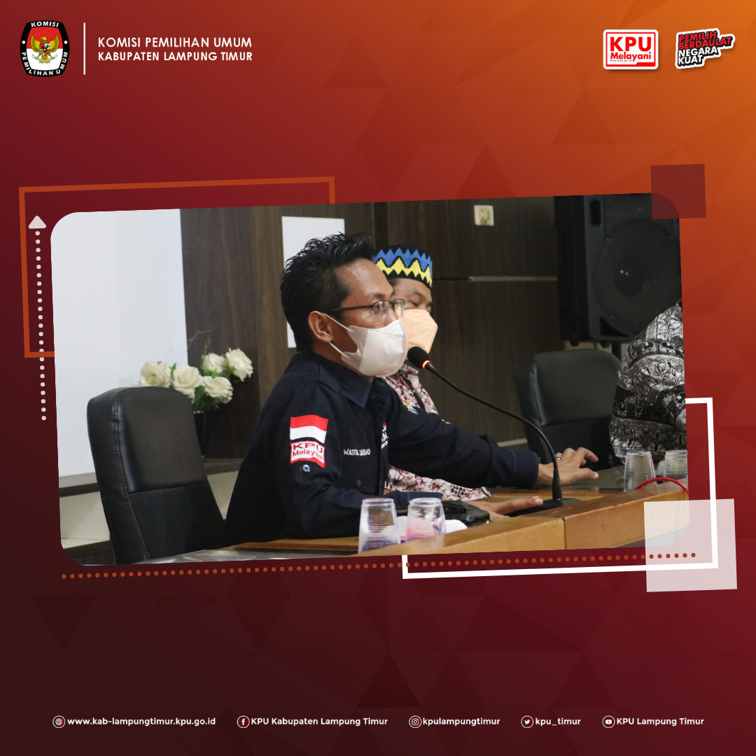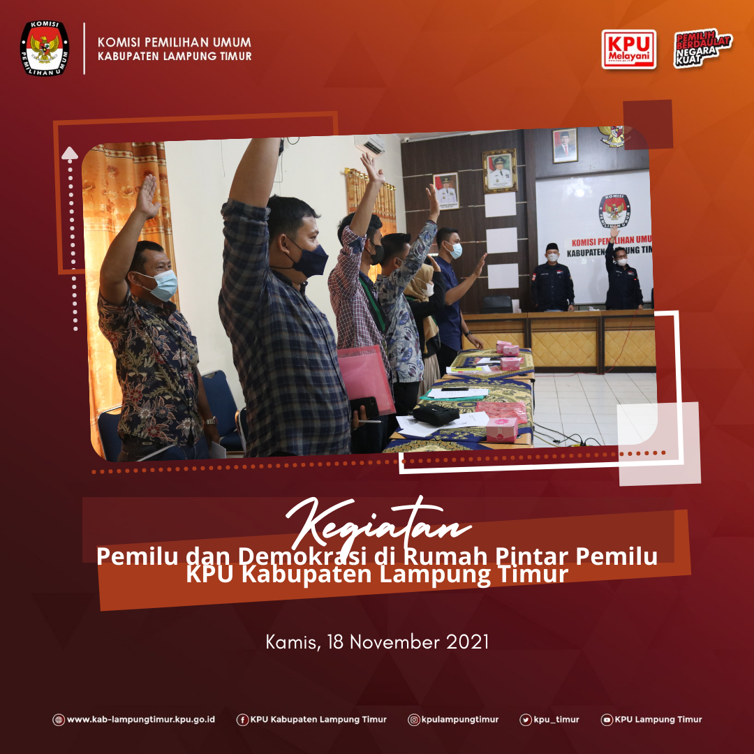 Sukadana, www.kab-lampungtimur.kpu.go.id – Komisi Pemilihan Umum Kabupaten Lampung Timur terus berupaya memberikan pengetahuan dan pemahaman serta kesadaran terhadap masyarakat atau pemilih terkait pentingnya pelaksanaan Pemilihan Umum (Pemilu) dan Demokrasi. Salah satu upaya yang dilakukan untuk mencapai maksud tersebut adalah penyelenggaraan kegiatan pada Rumah Pintar Pemilu KPU Kabupaten Lampung Timur. Hal demikian yang dilaksanakan oleh KPU Kabupaten Lampung Timur pada Kamis (18/11/2021). KPU Kabupaten Lampung Timur menerima stakeholder untuk sama-sama berbagi pengalaman dan pengetahuan terkait pentingnya pelaksanaan demokrasi dan pemilu di Indonesia.