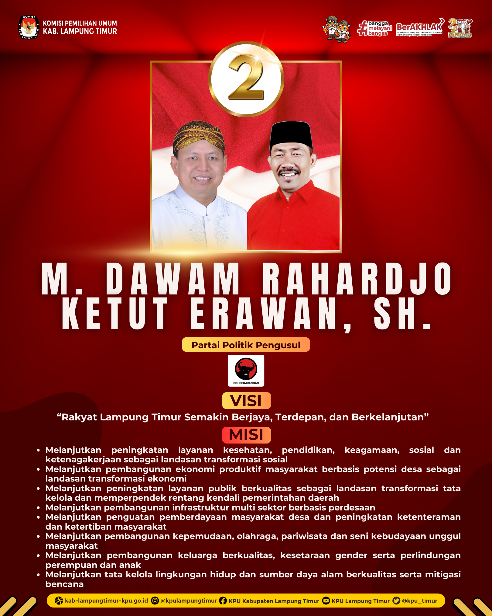 VISI MISI PASANGAN CALON BUPATI DAN WAKIL BUPATI LAMPUNG TIMUR PEMILIHAN 2024